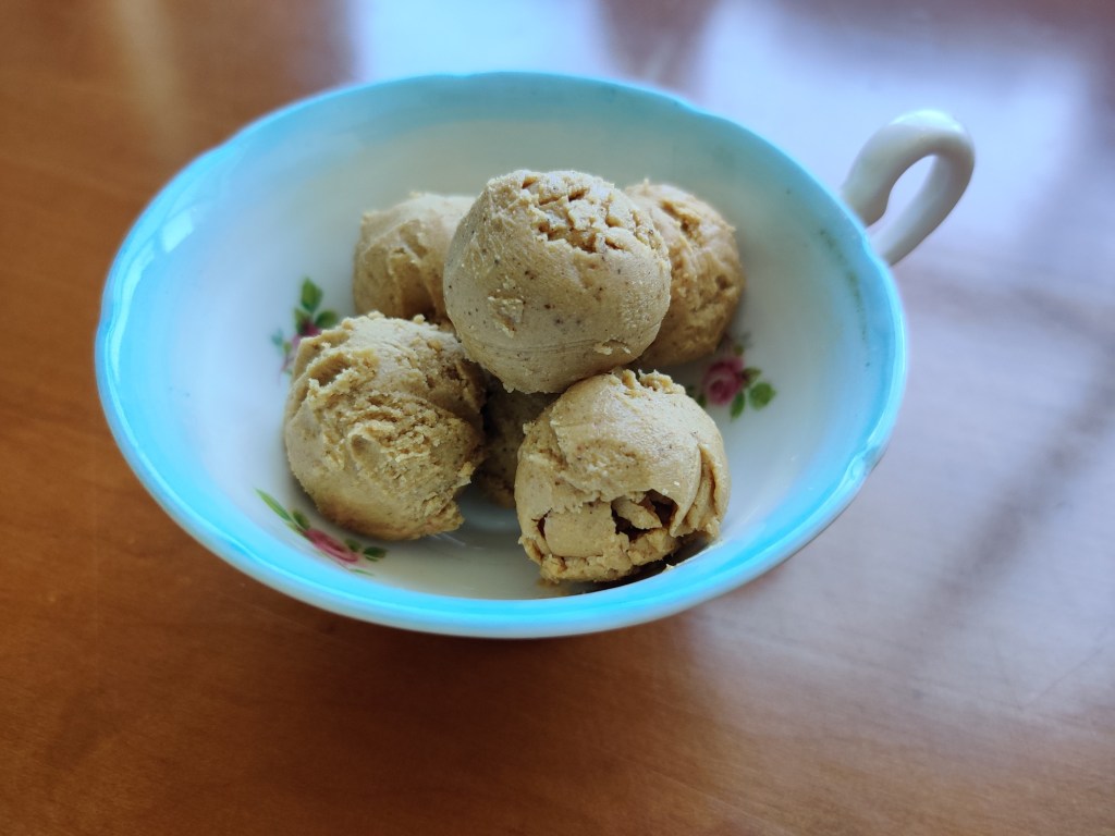 I had an exercise-buff friend who was looking to gain weight and was not fond of chocolate. He also wasn’t particularly fussy about taste as long as it did the job. Fat bombs are a keto treat that are predominantly low in carbs and protein and insanely high in fat. They’re usually taken to fulfil a fat quota imposed in keto. I thought this old be a good place to start. Taking a traditional fat bomb recipe I swapped out the coconut oil for cacao butter but kept the almond butter. I added the xylitol and then added in the fiber and protein powder for give it more exercise focused nutrients. I chose to use the pumpkin powder since he said he didn’t care about taste and I was ready to have it gone from my sight.